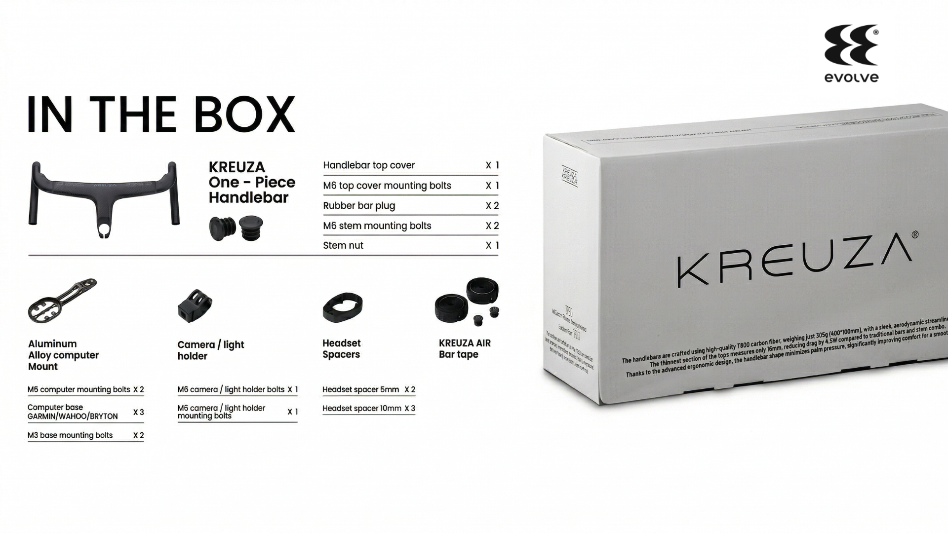 O Kit Guidão Integrado Evolve Kreuza Apex é um cockpit de estrada em carbono Toray T800 monobloco, desenvolvido para quem busca máxima integração, ganho aerodinâmico e precisão na pilotagem em treinos e competições.